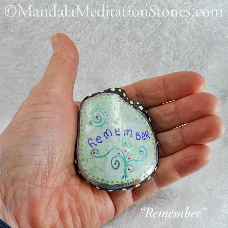 Remember Mandala Meditation Stone – The Mandala Lady – Hand-painted Stones October 30, 2017 Return to: “Remember” Meditation StoneFull resolution (750 × 750) Image navigation Previous Image Next Image Remember - Back